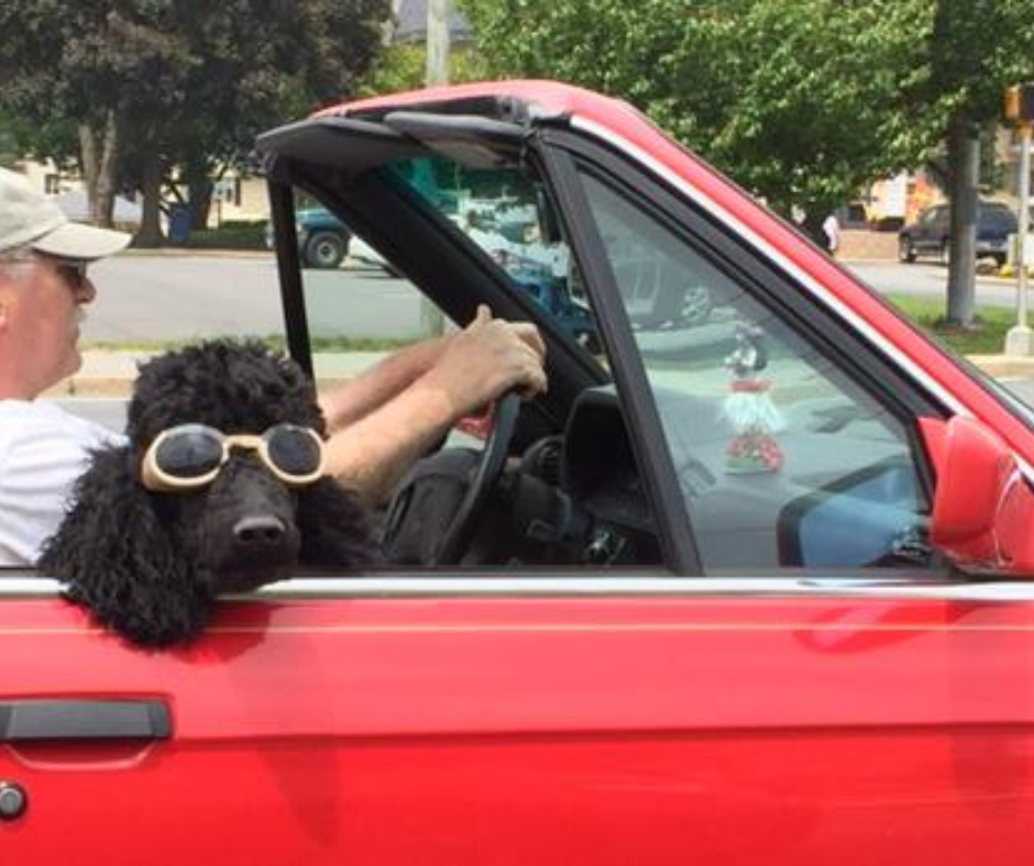 I ran across this picture the other day. My husband and I were in the car years ago and were stopped at a red light. (Yes, believe it or not he did stop.) As we were sitting there, this car drove up right next to us. I started laughing not only at the dog with the sunglasses but also at the fact that the dog was completely comfortable with it and seemed as though it was a natural and normal occurrence. He looked at me as if to say, “What’s the matter? Haven’t you ever seen a dog riding in a red